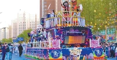 傍晚时分,青海西宁市城北区豹街开启花车巡游。 |